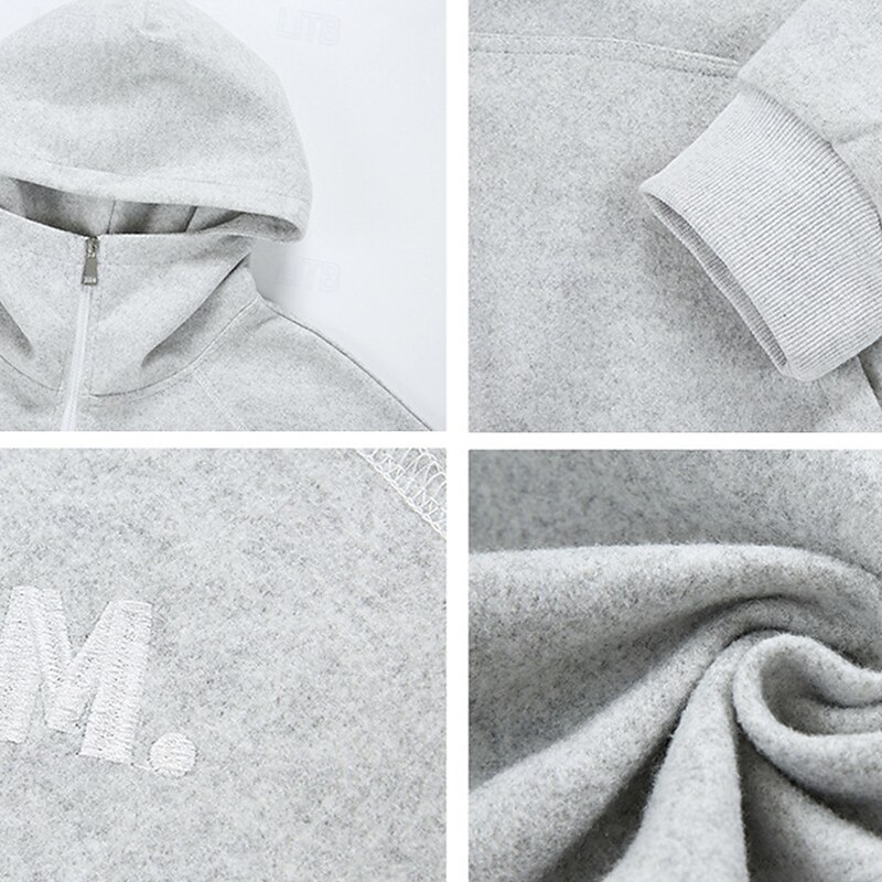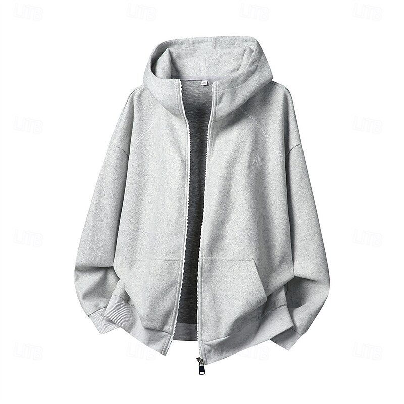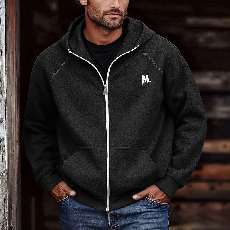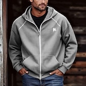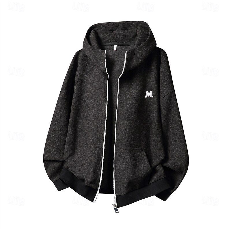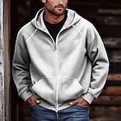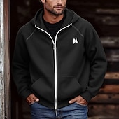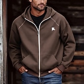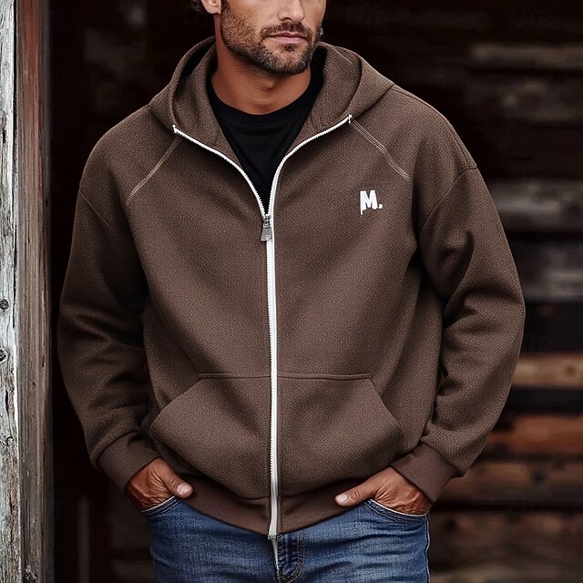 More information about Men's Hoodie Full Zip Hoodie Black Brown Light Grey Dark Gray Hooded Letter Pocket Embroidery Sports & Outdoor Daily Holiday Polyester Streetwear Basic Casual Spring Fall Clothing Apparel Hoodies