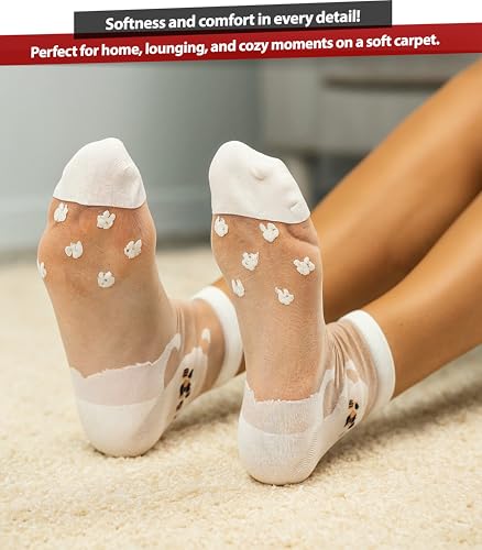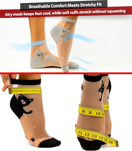 More information about 5 Pairs Set of Women’s Sheer Cat Socks with Paw Print Sole – Transparent Mesh Stretchy Short Socks for US Size 6.5–9 – Cute Animal Design in Assorted Colors
