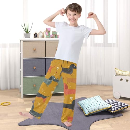 Cute Dachshund Love Boys Long Pants Soft Trousers Elastic Waist Kids Lounge Bottoms with Pockets S-XL 6