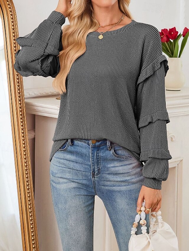 More information about Women's Blouse Striped Modern Casual Long Sleeve Lantern Sleeve Crew Neck Regular Tops Daily Holiday Ruched Black Fall