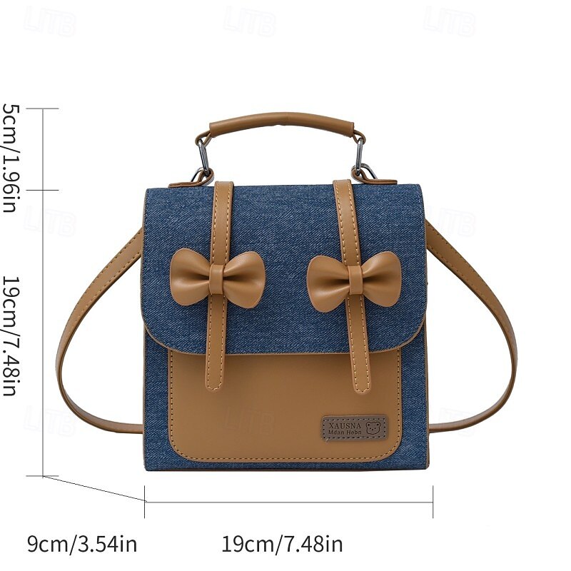 HOT ! Cute Bowknot Crossbody Bag for Girls – Small Canvas and PU Satchel Purse for School, Weekend Outings, and Casual Wear