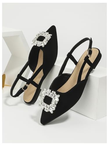HOT ! OYOANGLE Women's Rhinestone Decor Pointed Toe Slingback Flats Faux Suede Dress Sandals
