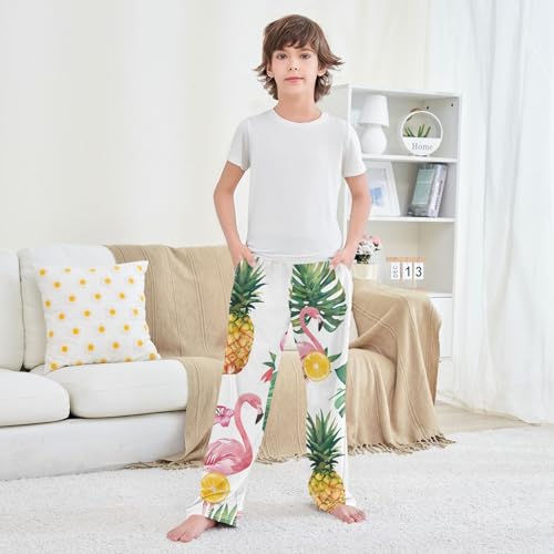 More information about Flamingo Pineapple Orange Boys Long Pants Soft Trousers Elastic Waist Kids Lounge Bottoms with Pockets S-XL