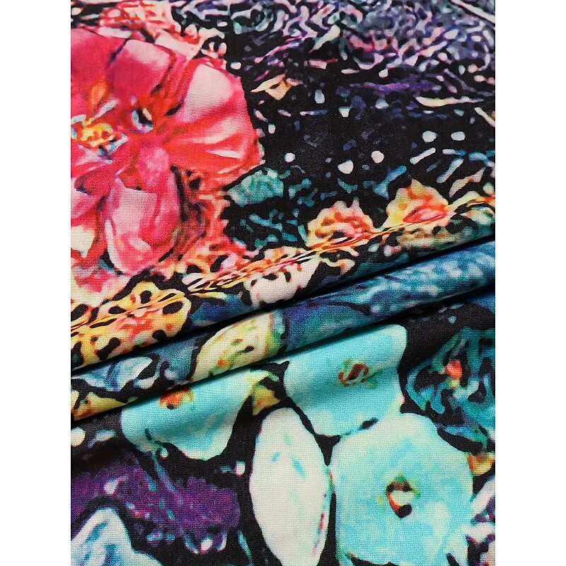 : The dress boasts a vibrant floral pattern enriched with intricate prints, infusing a touch of bohemian charm. The crew neckline adds a timeless element, while the practical pocket design offers functionality without compromising style.