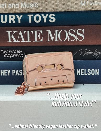 More information about Vegan Leather Zipper Wallet, Cassette Tape Design, Credit Card Holder, Women's Cute Wallet, Retro Wallet, Rose Gold Chrome, 70264 AA