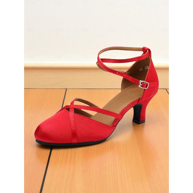 Women's Red Satin Strappy Dance Heels - Vintage Gatsby Ballroom Shoes for Professional Dancing and Party Performance 1