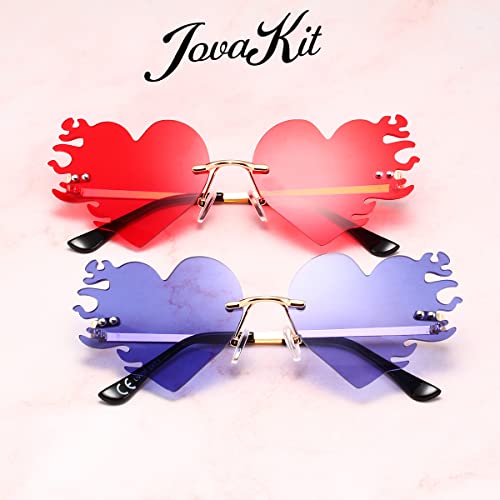 HOT ! JOVAKIT Fire Heart Shaped Sunglasses for Women Men Vintage Rimless Flame Love Sun Glasses Retro Rave Party Halloween Glasses