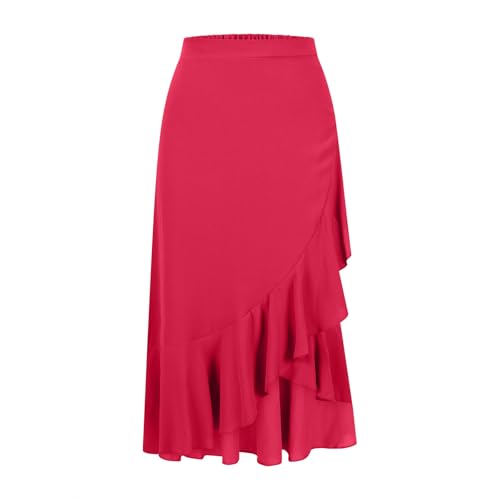 HOT ! Women's High Waist Skirts Dressy Casual Ruffle Shirts High Low Asymmetric Skirt Elastic Waist Flowy Skirts Business Skirt