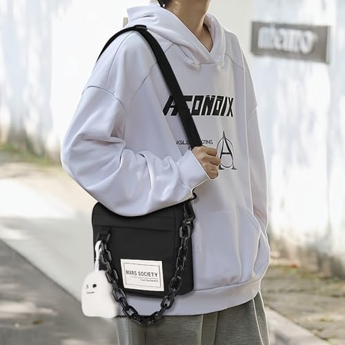 HOT ! Small Crossbody Messenger Bag for Women Men, Cute Nylon Shoulder Purse Bag with Detachable Ghost Pendant, Black