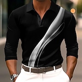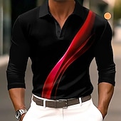 More information about Men's Geometric Line Golf Shirt Long Sleeve Polo Shirts Collared Shirts Casual Business Casual Street Athleisure Outdoor clothing Holiday Buttons 3D Print Spring Fall Winter White Red Blue