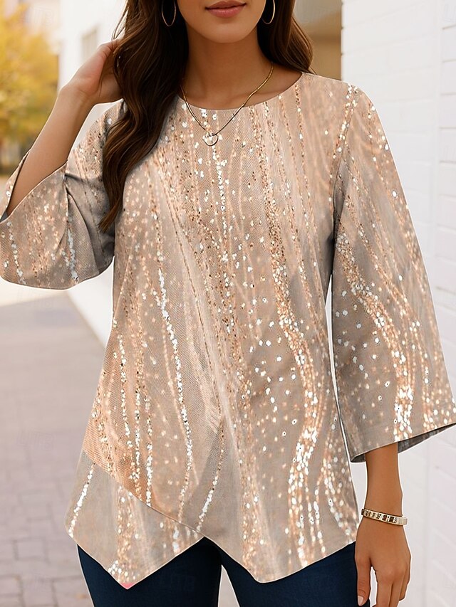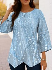 More information about Women's Blouse Ombre Floral Graphic Vintage Tropical Stylish 3/4 Length Sleeve Crew Neck Regular Tops Daily Buttons Print Asymmetric Hem Blue Purple Green Khaki Spring Fall