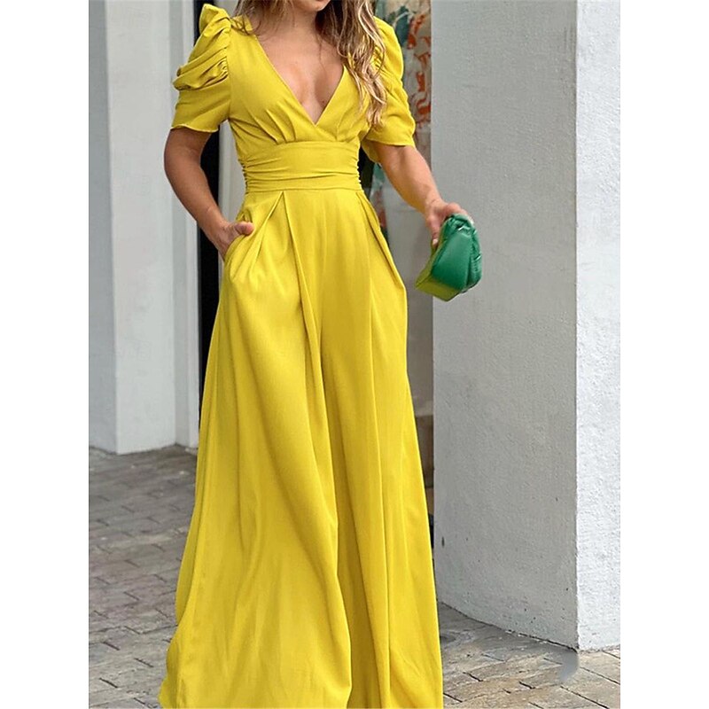 More information about Women's Normal Jumpsuit Elegant Solid Color Short Sleeve V Neck Backless Pocket Street Daily Regular Fit Black Yellow Light Green Summer