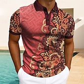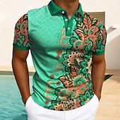 Men's Floral Print Polo Short Sleeve Polo Shirts Collared Shirts Casual Athleisure Daily Wear Buttons Summer Red Blue Green 1