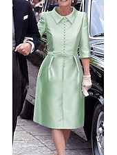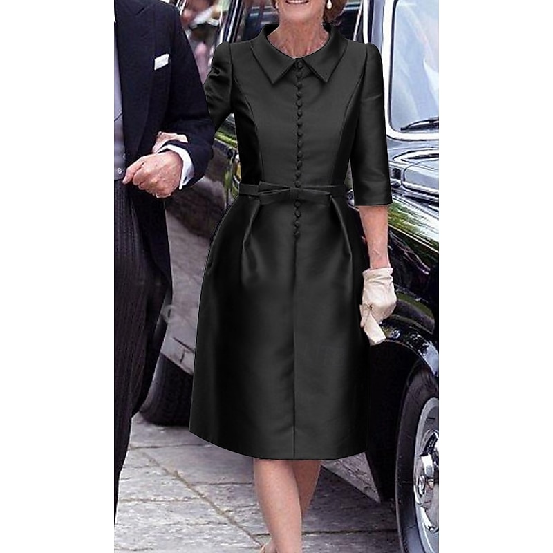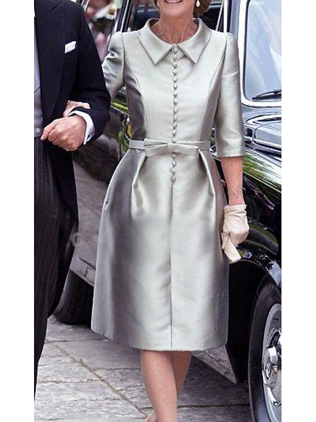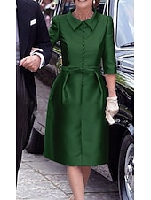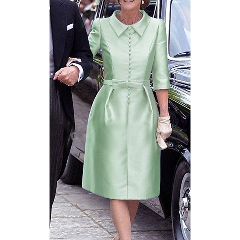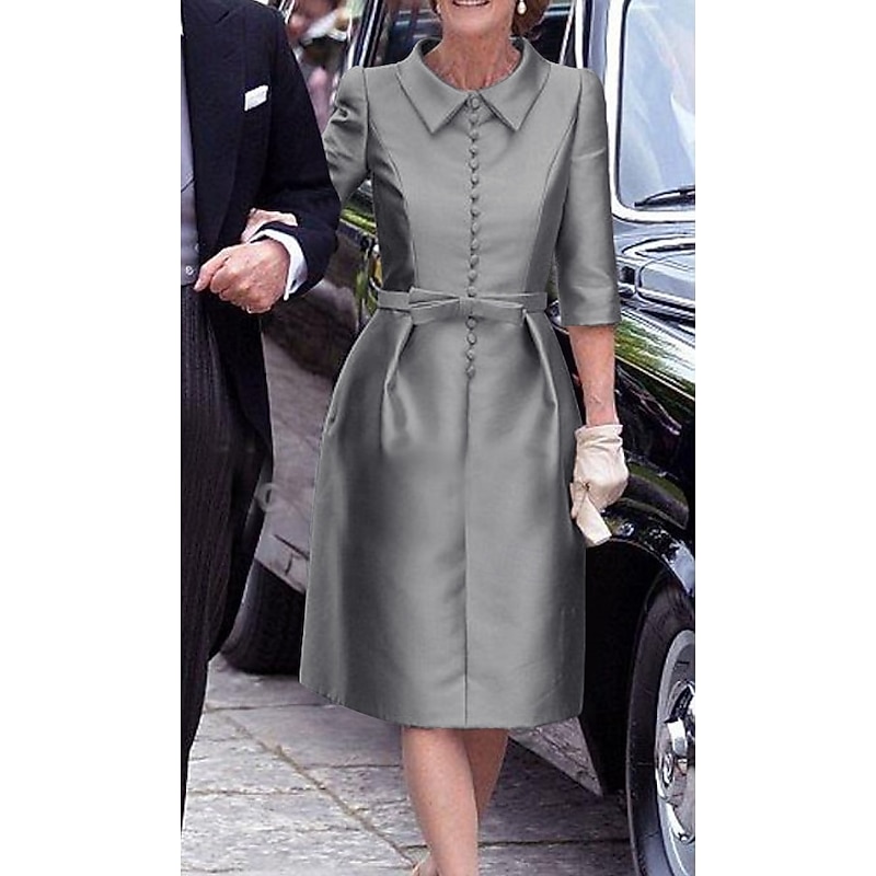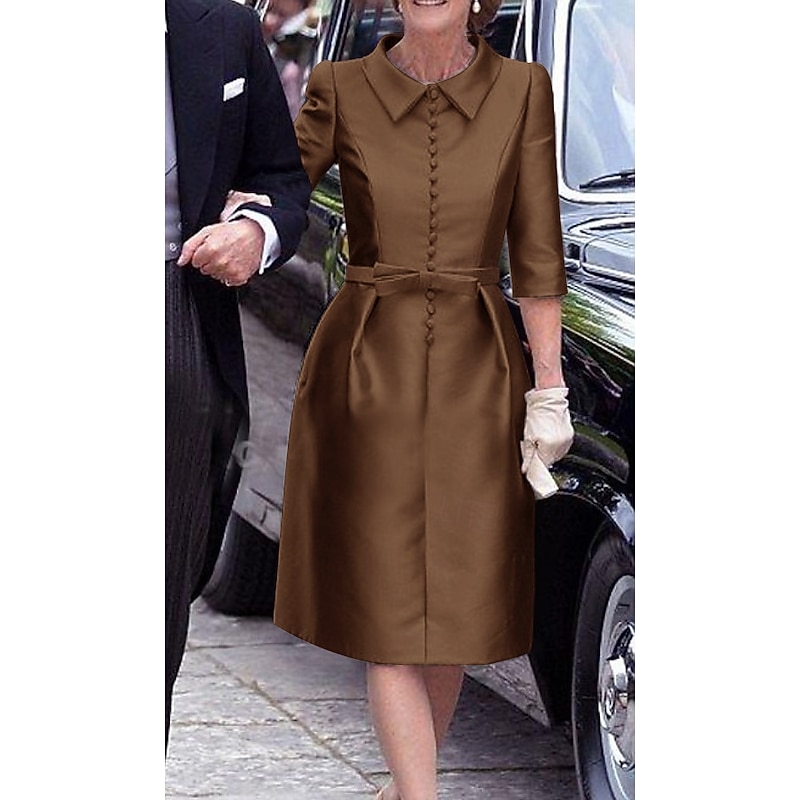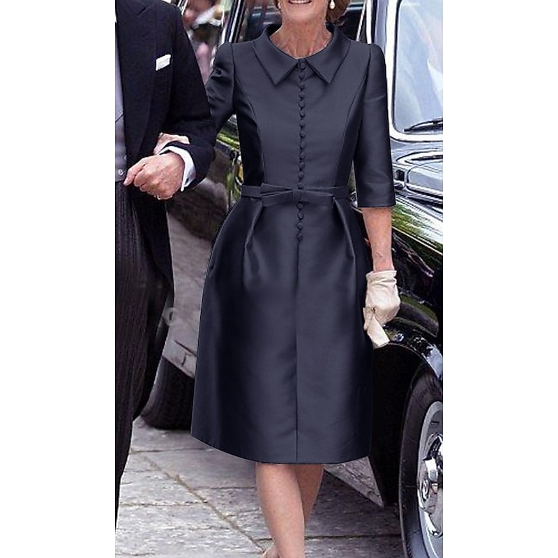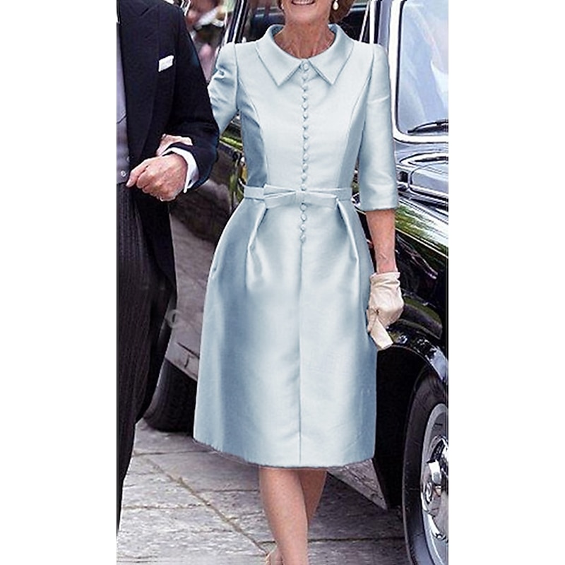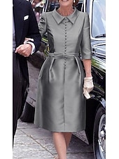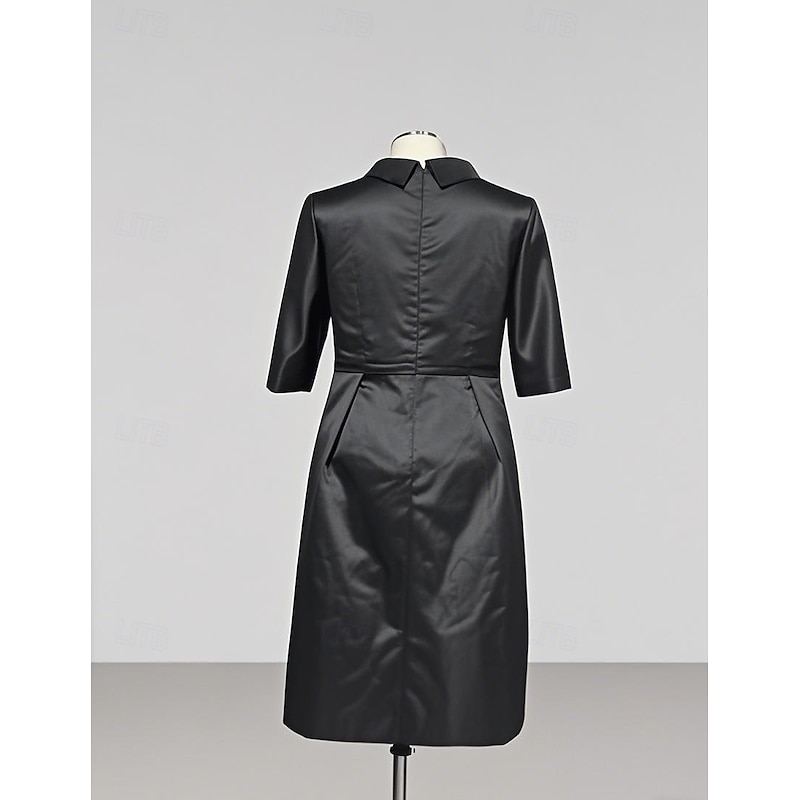 More information about Sheath Mother of the BrideCocktail Dresses Elegant Dress Wedding Guest Cocktail Party Knee Length 3/4 Length Sleeve Shirt Collar Pocket Stretch Satin with Sash / Ribbon Race Day Dress