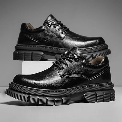 Mens Lace-Up Leather Chunky Heel Casual Dress Shoes New Low-Cut British Style Business Comfortable Shoes for Men, Perfect for Office & Casual Occasions 6