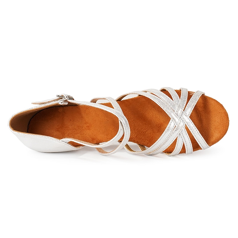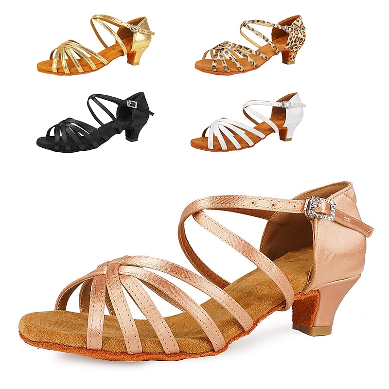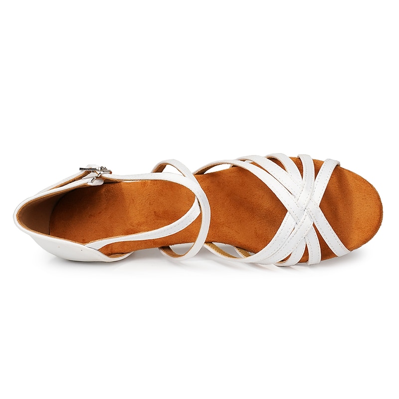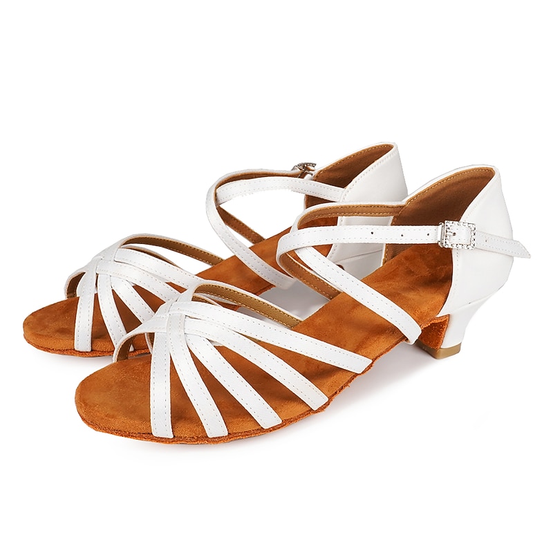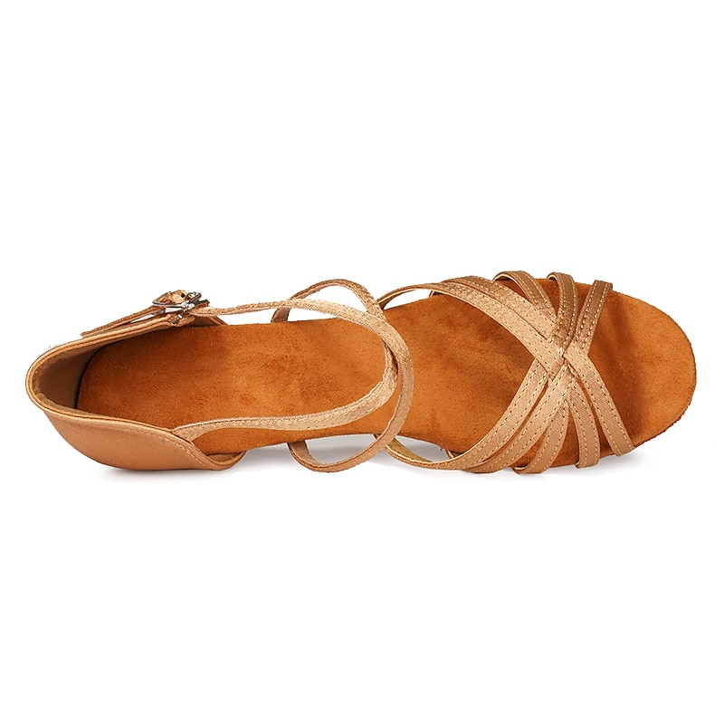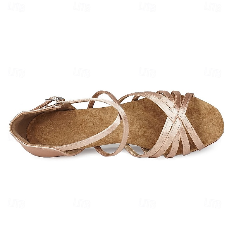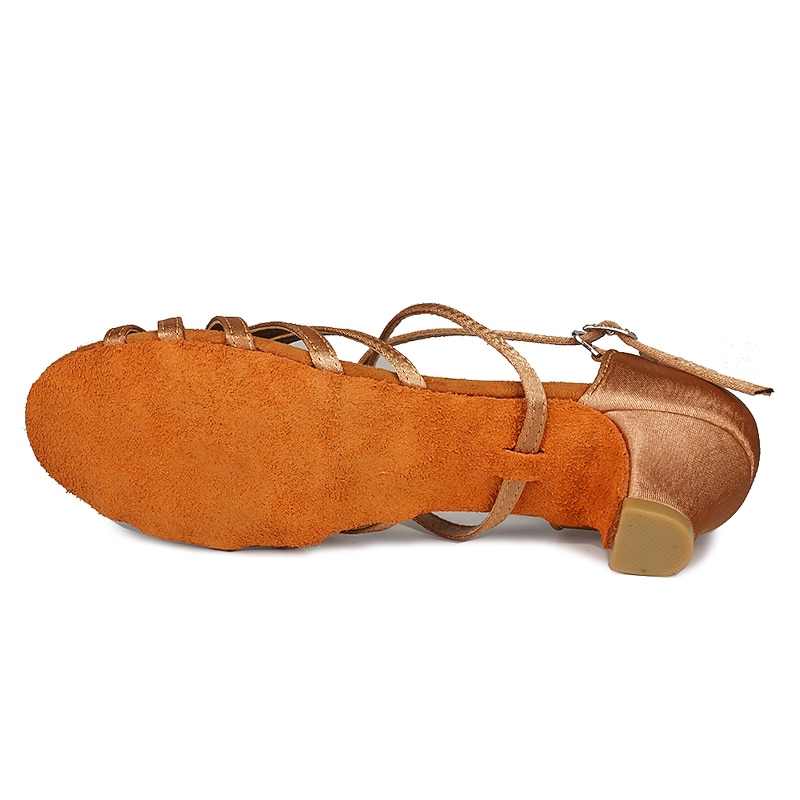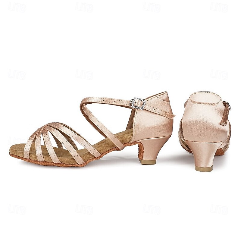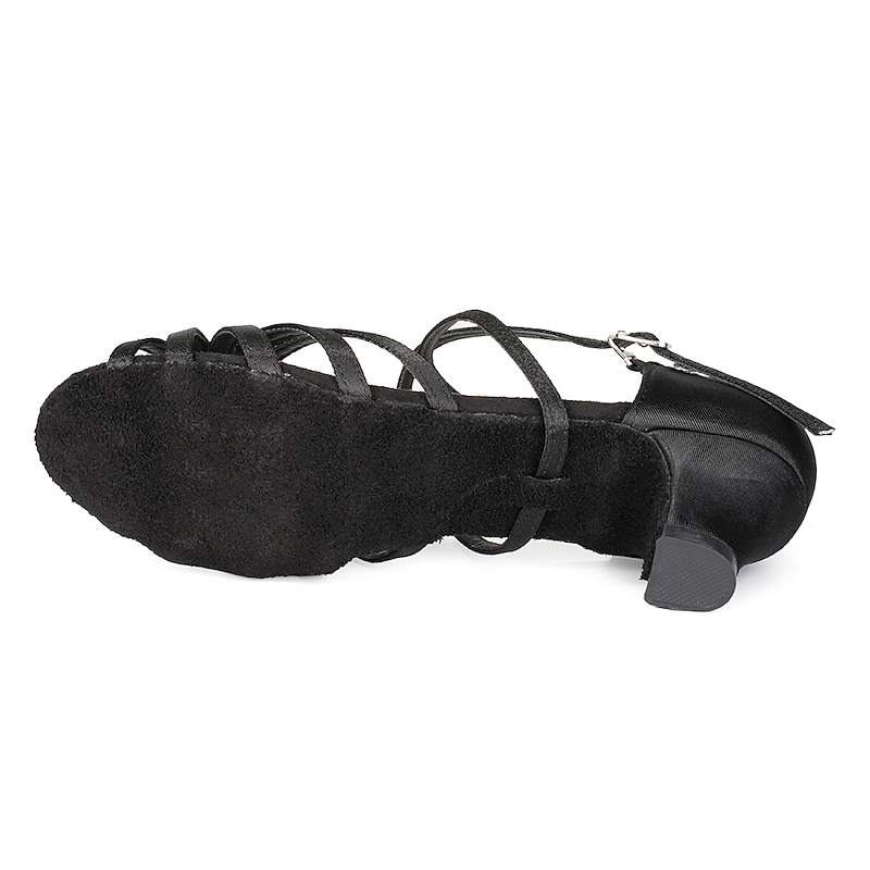 : These women's dance shoes feature an alluring open-toe design with elegant crisscrossing straps at the front. An adjustable ankle strap boasting a sparkling buckle not only adds a touch of glamour but also allows for a customizable fit.