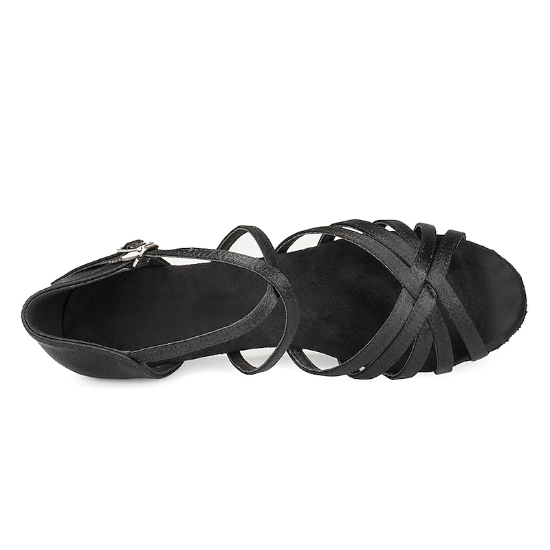 More information about Women's Black Strappy Latin Dance Shoes - Satin Open-Toe Sandals with Low Heel and Suede Sole for Ballroom, Salsa, and Tango