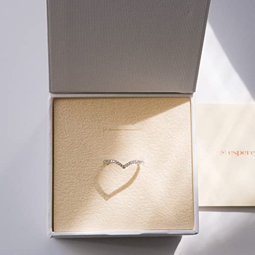 • Perfect for pairing - Shimmering scalloped pavé cz stones flow halfway down this band, creating a subtly curved chevron shape. This stylish ring is perfect on its own or paired with an engagement ring. You can't go wrong with this simple and classic choice as a wedding band or anniversary ring.