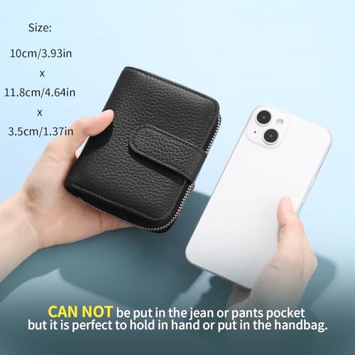 • 【Genuine Leather】Credit card holder for women is made of high-quality lychee grain leather fabric, equipped with vintage brass double snap fasteners and smooth zippers. Soft to the touch, exquisitely crafted, portable and sturdy. Elegantly across your fashion territory with your small women's wallet!