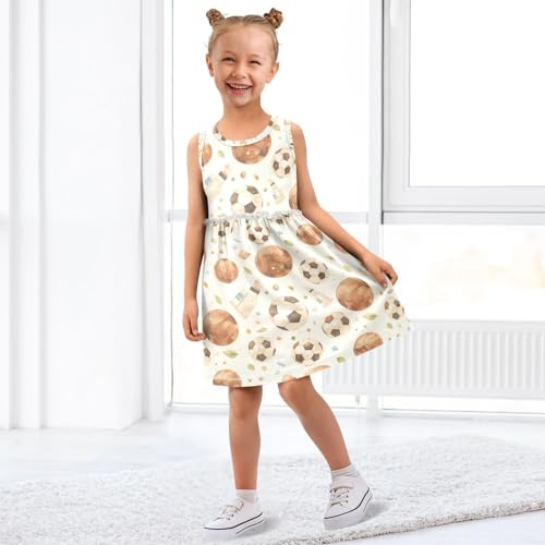 More information about KLL Watercolor Brown Football Girls' Midi Dress Fashion Sundress Spring Summer Crew Neck