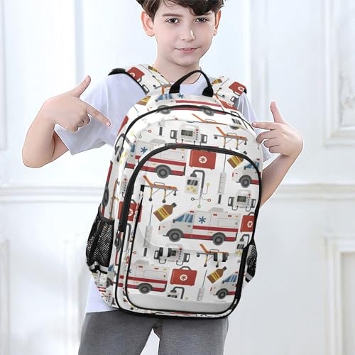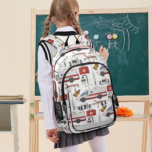 Ambulance Cars Pattern Backpack School Bag Lightweight Laptop Backpack Students Travel Bookbag with Reflective Stripes 1