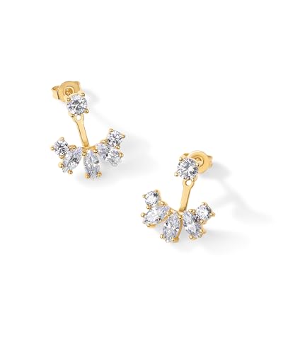 PAVOI 18K Gold Plated Sterling Silver Posts Cubic Zirconia Ear Jacket Statement Earrings for Women | Front & Back Stud Earring Jackets 1