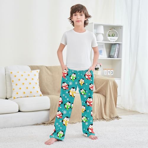 Penguin with Scarf Boys Long Pants Soft Trousers Elastic Waist Kids Lounge Bottoms with Pockets S-XL 4