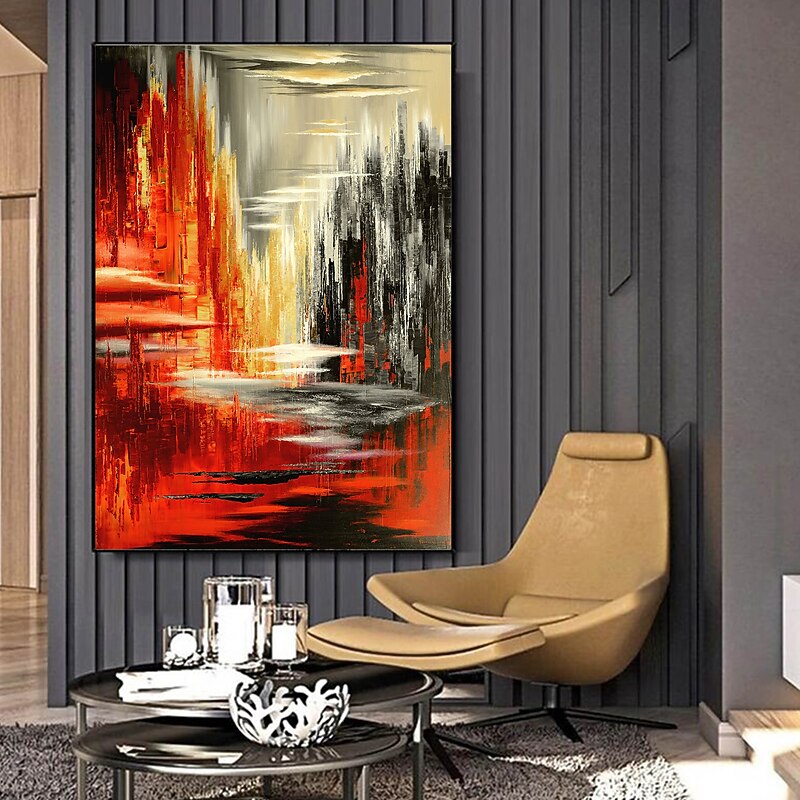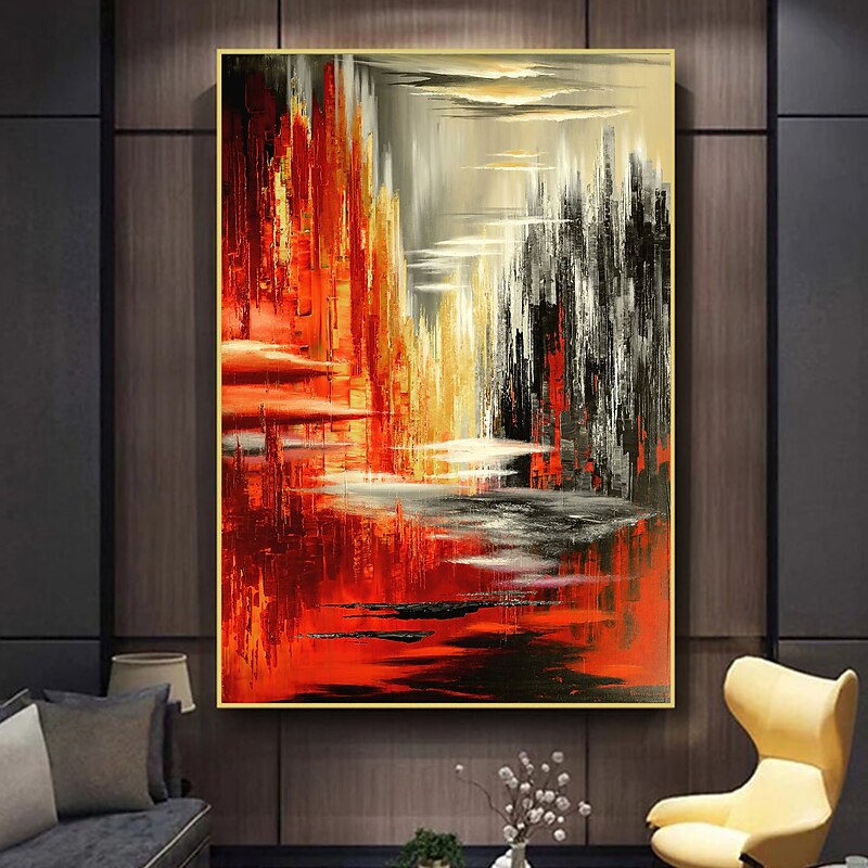 More information about Handmade Oil Painting Canvas wall Art Decoration Abstract Knife Painting Landscape Red For Home Decor Rolled Frameless Unstretched Painting