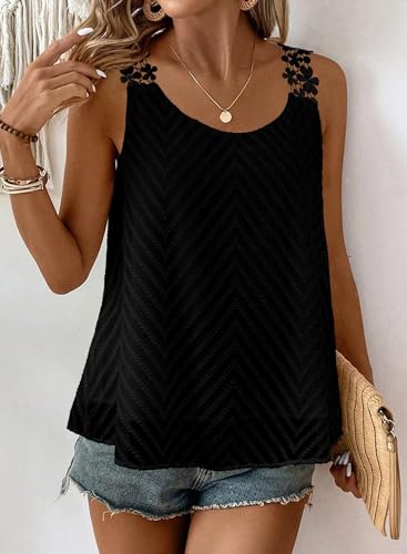 Womens Tank Tops Flowy Sleeveless Summer Boho Tank Top for Women Crewneck Casual Spaghetti Strap Lace Camisole Shirt