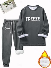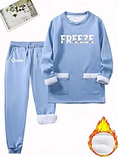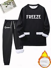 More information about Women's heated Daily Two Piece Sets Tracksuit Pants Sets Long Sleeve Crew Neck Letter Drawstring Print Casual Daily Black Dark Pink Blue Fall Regular Fit