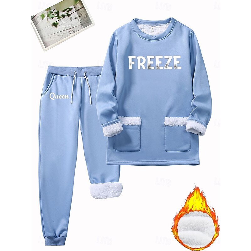 Women's Warm Daily Two Piece Sets Tracksuit Pants Sets Long Sleeve Crew Neck Letter Drawstring Print Casual Daily Black Dark Pink Blue Fall Regular Fit 1