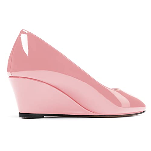 WAYDERNS Women's Slip On Patent Leather Square Toe Low Heel Wedge Pumps Shoes 2 Inch 5