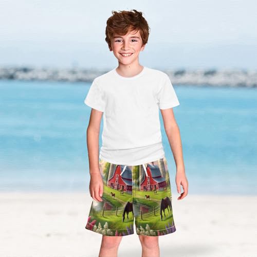 Farm Red Barn Boys Swim Trunks Quick Dry Toddler Swimsuit Boy Swimwear Bathing Suits Board Shorts 3T 4