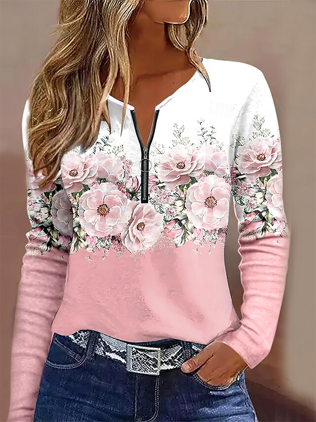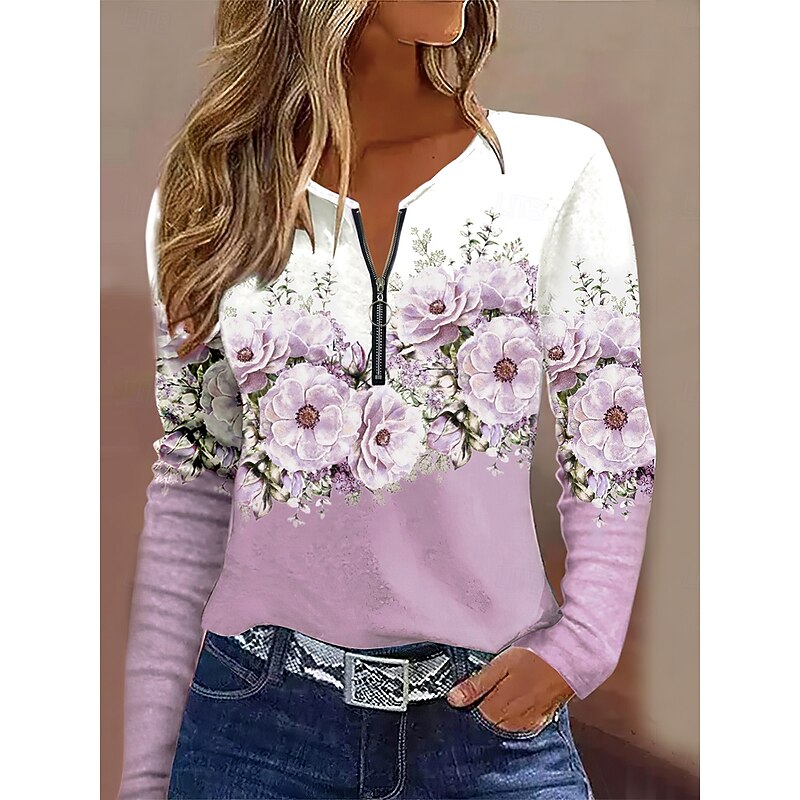 $23.99 - Women's T Shirt Ombre Floral Graphic Elegant Vintage Stylish Long Sleeve Round Neck Notched Neck Regular Tops Daily Weekend Zipper Print Pink Sky Blue Purple Spring Fall Winter 2025. Shop for cheap Floral tee online? Buy at lightinthebox.com on sale today!
