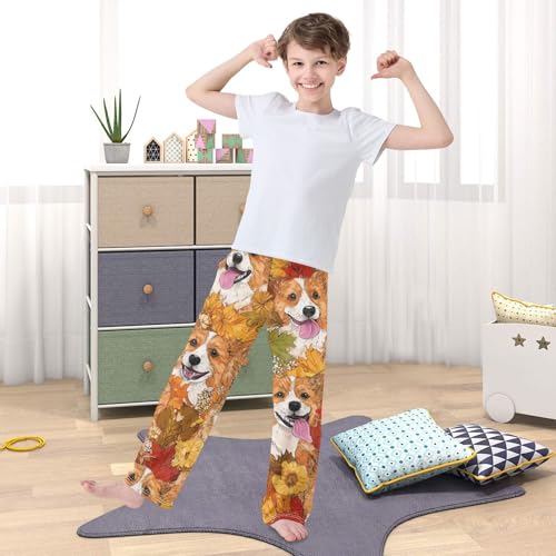 Corgi Dog Autumn Flowers Boys Long Pants Soft Trousers Elastic Waist Kids Lounge Bottoms with Pockets S-XL 6