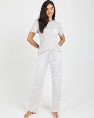 Real Essentials 2 Pack: Women's Pajama Set - Choose from Short Sleeve with Pocket or Long Sleeve without Pocket 2