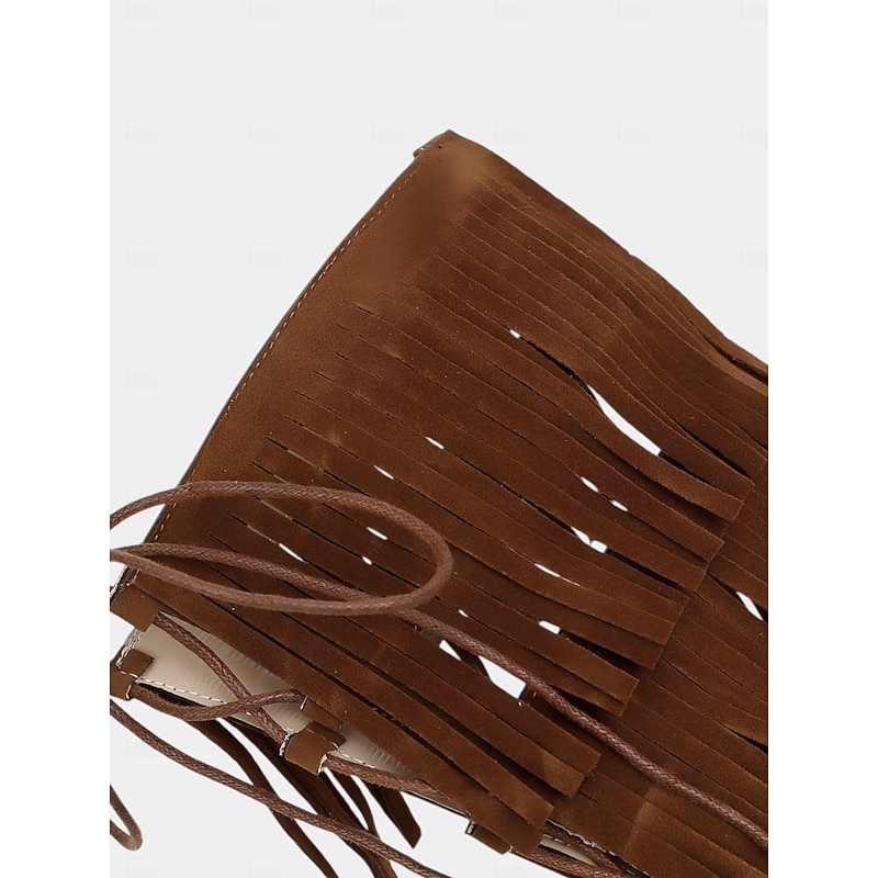 Women's Bohemian Knee-High Gladiator Sandals with Fringe and Lace-Up Design – Festival-Ready Statement Shoes for Summer Events 10