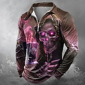 More information about Day of the Dead Men's Skull Skulls Zip Polo Shirts Long Sleeve Polo Shirts Lapel Casual Horror Dark Outdoor Festival Outfit 3D Print Spring Fall Winter Red Blue Purple