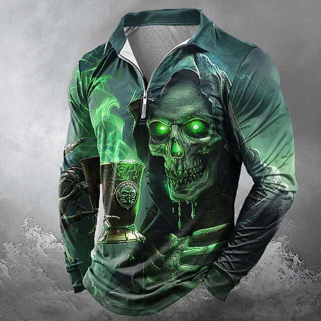$21.99 - Day of the Dead Men's Skull Skulls Zip Polo Shirts Long Sleeve Polo Shirts Lapel Casual Horror Dark Outdoor Festival Outfit 3D Print Spring Fall Winter Red Blue Purple 2025. Shop for cheap Halloween Polos online? Buy at lightinthebox.com on sale today!