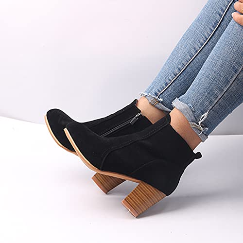 HOT ! Womens Pointed Toe Stacked Mid Heel Ankle Boots Side Zipper Faux Suede Booties Slip On Western Booties Work Boots Casual Fashion Short Boots for Ladies Fall Winter Dress Shoes Comfy