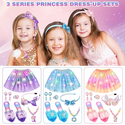 • Light Up Princess Dress Up for Halloween, Birthday, Christmas Party. Experience A Special & Amazing Dress Up Time with LED Light Up Skirts & Little Girls' Play Heels. The princess role-play games satisfy your little girl's fantasy of being a princess.