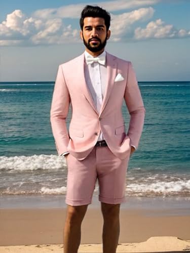 Men's Summer Suit 2 Piece Slim Fit Shorts Suits for Men Lightweight Tuxedo for Prom Beach Wedding 5