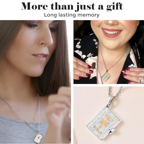 SHOP LC DELIVERING JOY Cross Necklace for Women - Openable Holy Bible Pendant Metal Pages - Bible Necklace for Women Stainless Steel Religious Jewelry Birthday Christian Gifts for Womens 24" 5