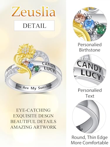 • 【MEANINGFUL】—Love and Eternity. Each ring has a heart, half sunflower and half zircon, which is a symbol of eternal love. Choose your 3 birthstones, engrave your name or memorable words on them, and give them a more special meaning.