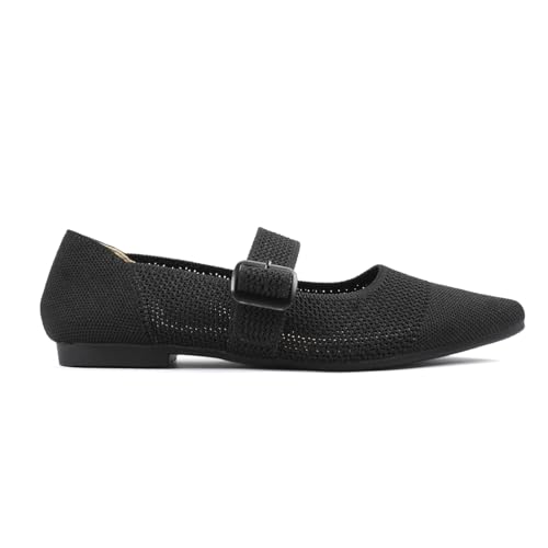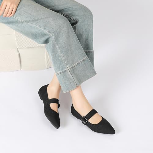 Semwiss Women's Mary Jane Flats Pointed Toe Ballet Flat Breathable Comfortable Dressy Casual Office Shoes with Adjustable Strap Design 6