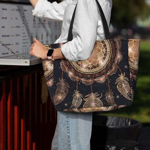HOT ! Native American Indian Talisman Dreamcatcher With Magic Mandala And Feathers Beach Bag Women Tote Bag Pool Bag With Zipper For Gym Grocery Travel With Wet Pocket