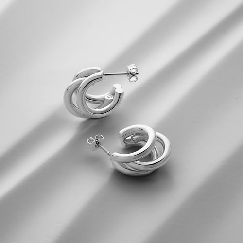 • SILVER HOOP EARRINGS - These small chunky hoops feature three split hoops in sterling silver plated over brass, making a bold fashion statement with their elegant design and radiant shine.