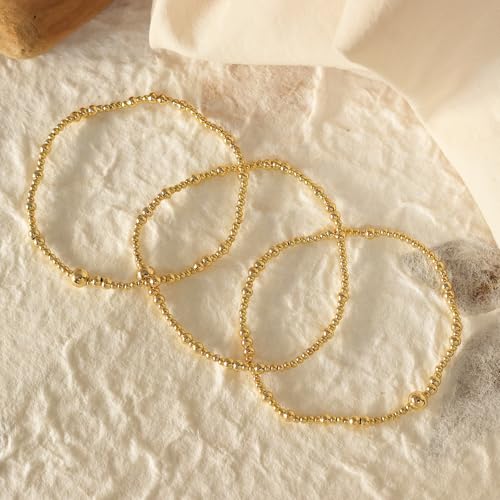 • Charming elastic bracelets, gold plated brass, the beads bracelets we designed features different size, all strung on a sturdy elastic cord, each gold beads possessing its own beauty, giving special sparkle and shimmering, perfect for stacking, and easy to style.