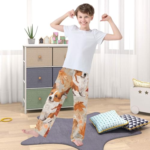 Corgi Dog Maple Leaves Boys Long Pants Soft Trousers Elastic Waist Kids Lounge Bottoms with Pockets S-XL 6