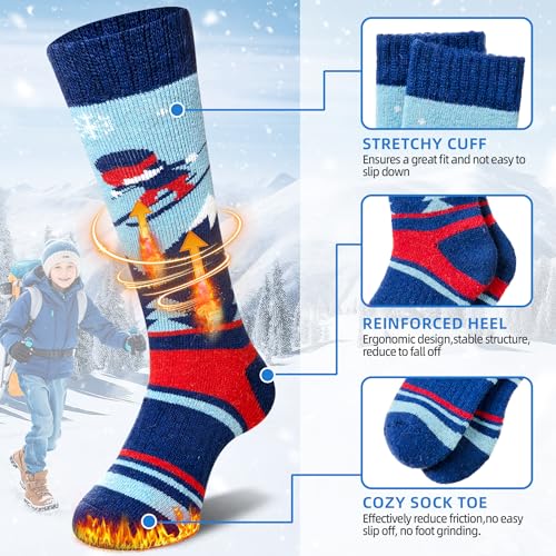 SeeyAN Kids Ski Socks Merino Wool Thermal Winter Socks Boys Girls Warm SnowBoarding Thick Skiing Socks 3 Pairs 4